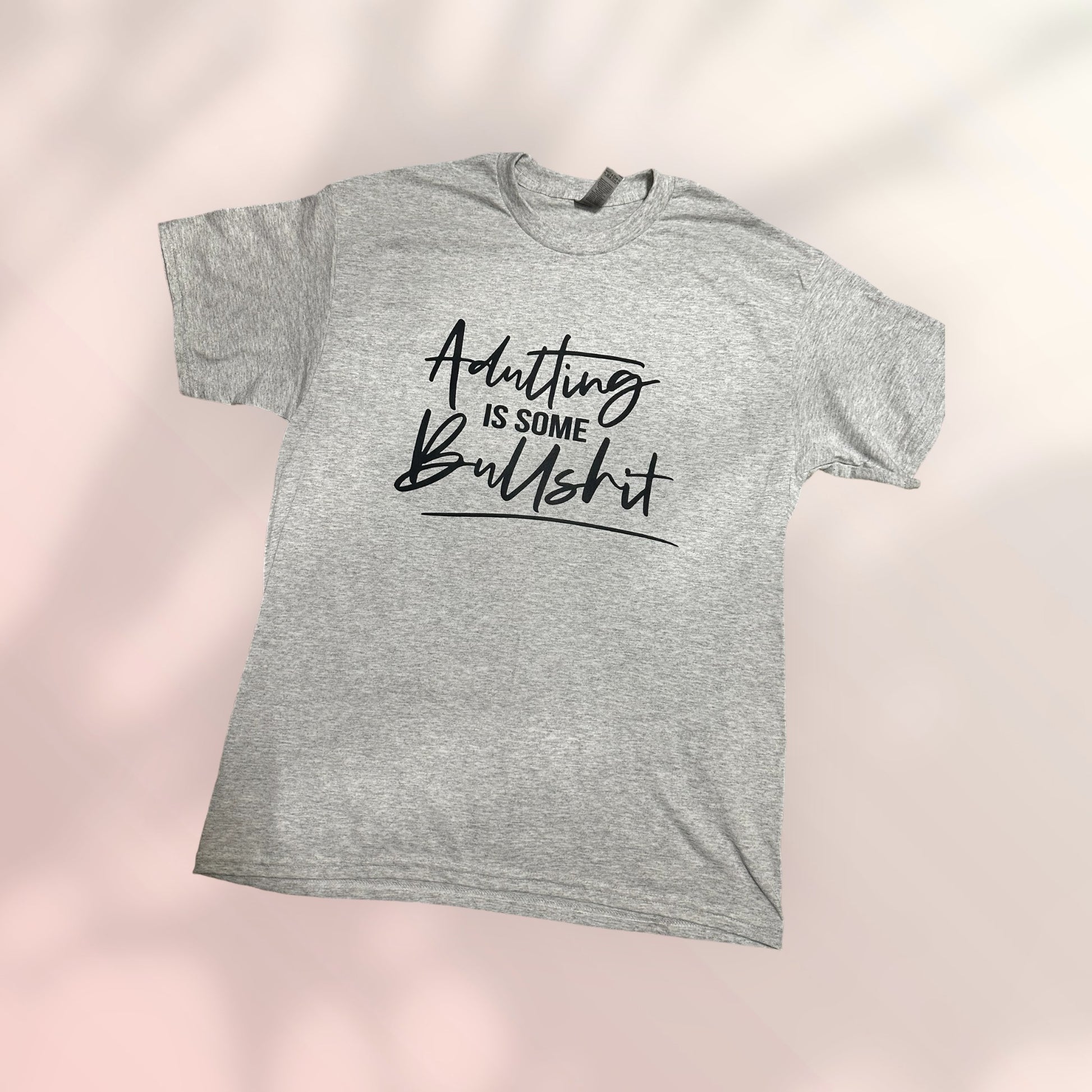 Upgrade your wardrobe with our Adulting t-shirt, featuring a bold screen print design on this soft cotton t-shirt. This sarcastic shirt adds a touch of humor to your style while keeping you comfortable all day long. Perfect for those who have mastered the art of adulting.